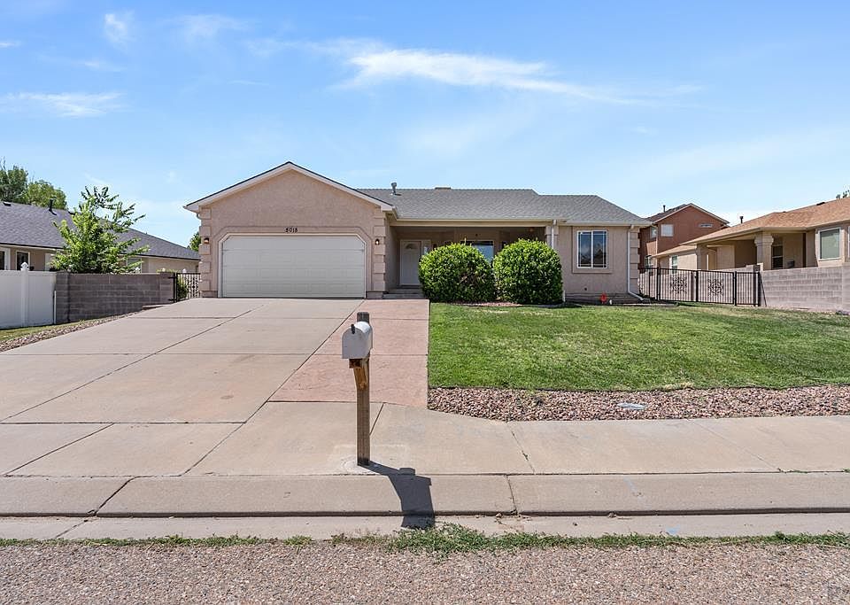 Welcome to 5018 Mojave Dr. - A beautifully updated rancher in one of Pueblo's most desirable neighborhoods - El Camino. This charming 1417 sq. ft ranch-style home has 3 bedrooms, 2 bathrooms, and an attached 2 car garage. Thoughtfully designed with a modern touch, this home offers both comfort and functionality for everyday living. Step into a bright and airy open concept living room that flows into the kitchen, perfect for entertaining. The kitchen has all new appliances, a stylish new sink and updated fixtures. For added convenience, the laundry room is located on the main. Enjoy a split bedroom layout, 2 bedrooms and a shared full bathroom on one side of the home and a spacious primary suite on the other. The primary bedroom has a walk-in closet and a generously sized ensuite bathroom. A large covered front porch adds to the home's welcoming curb appeal while the full unfinished basement offers endless potential to expand. The fully fenced backyard includes a mix of block and wrought iron fencing along with a sprinkler system to keep your landscaping easy and lush. Conveniently located near shopping, restaurants, schools and parks. Don't miss the opportunity to own this move in ready home in a sought-after Pueblo neighborhood- schedule your showing today!