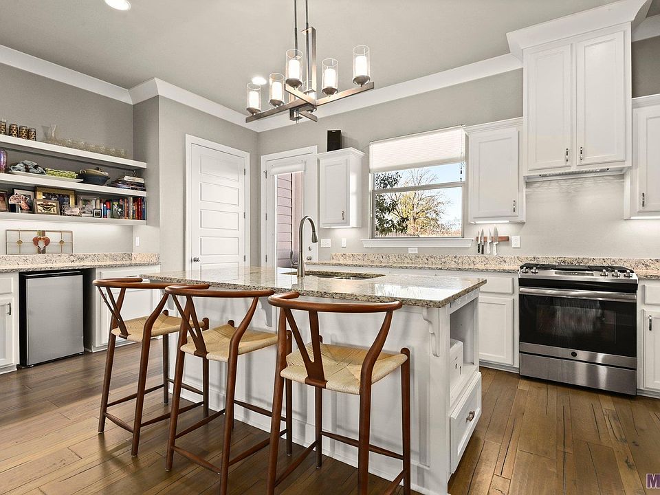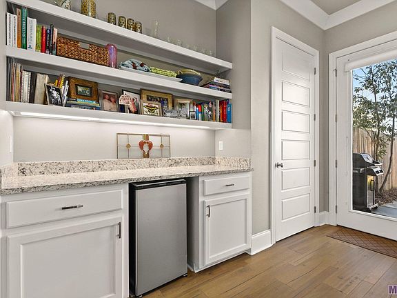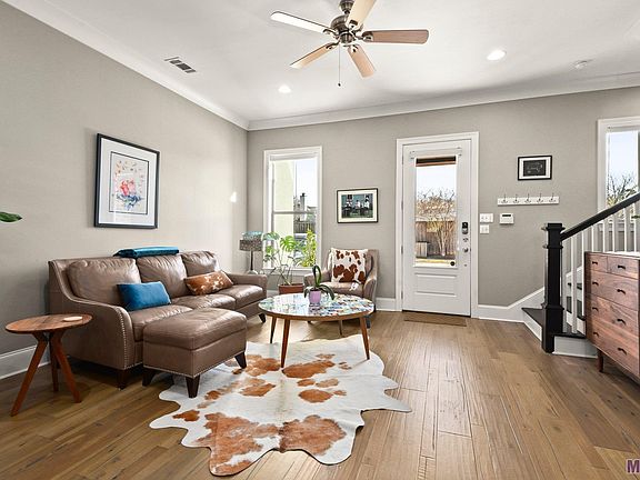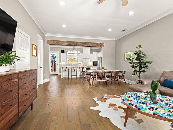 Experience luxury living at the Myrtle Grove Townhomes, a gated community just minutes away from downtown Baton Rouge, the Mississippi River Bridge, and the LSU campus/Tiger Stadium. Step into the inviting living room of this 2-bed, 2.5-bath unit featuring 10ft ceilings, antique pine beam and wood flooring throughout the main floor. The spacious layout seamlessly transitions from the dining area to the kitchen, highlighted by an 8ft island with 3cm granite, an under-mount sink, and custom-built white cabinetry. The kitchen is a chef's delight, equipped with a pantry, bar area, recessed lighting, and stainless appliances, including a 5-burner gas convection oven. The first floor is perfect for entertaining, with a conveniently located half bath off the dining area. Upstairs, discover the master suite with 9ft ceilings, a private en suite bath featuring double vanities, under-mount sinks, framed mirror, a tile shower and tub. The master suite also boasts a walk-in closet with built-in shelving. Relax on the rear balcony with wrought iron railing and enjoy gorgeous sunsets from this spot. Adjacent to the master suite, you'll find the laundry room and a generously sized second bedroom with a walk-in closet and a private bath. This immaculately maintained unit is only 3 years old and is situated in Flood Zone X, so flood insurance is not required. Don't miss the opportunity to schedule your private showing today! This one will not last!