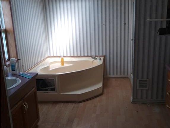 Spacious almost 2000 square foot manufactured home on over 3 acres with decks in front and rear of home. Fireplace in living room, kitchen with oak cabinets and an island. Skylights in kitchen provide more natural light. Large Master Suite with master bath featuring a Garden Tub and skylights. Out back there is a 16x10 storage shed, a horse shelter and pasture area. Seller Motivated