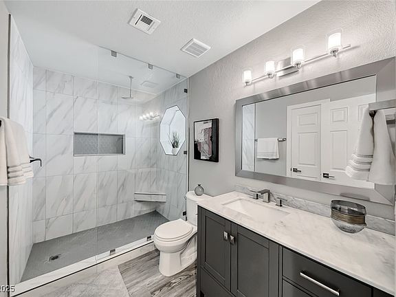 Designer tileCathedral ceilingsCustom organizersRemodeled kitchenLed lightingCozy gas fireplaceLarge walk-in shower