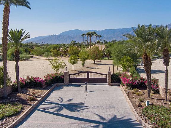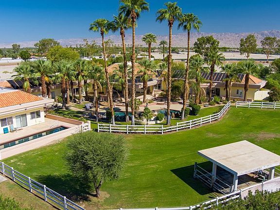 Welcome to Vista Montana Acres, a 2.5 acre equestrian estate comprised of 2 properties. The first is a spacious 5 bedroom, 4.5 bath home with stunning wood planked cathedral ceilings, an open concept kitchen with professional grade stainless steel Viking appliances, separate formal dining and living rooms, full wet bar,perfect for entertaining as well as 3 grand fireplaces and a two room master retreat with spacious en suite containing a spacious walk in closet, large glass enclosed shower, separate soaking bathtub and gorgeous exterior views including the panoramic southwest mountain scenery that surrounds. The second house is comprised of a 2 bed, 2 bath guest house containing a kitchenette and private laundry for added convenience! Both are tastefully furnished with western stylings and separated by a beautiful pool complete with descending rock waterfall, secondary lap pool, above ground spa and built in barbecue area, large covered patio with misters as well as a large fully enclosed grass pasture and covered stable for your equestrian needs. Located on a secluded street surrounded by lush landscaping for ultimate privacy within the exclusive gated community of La Quinta Polo Estates with modest HOA dues, directly across from Eldorado and the Empire Polo Fields, Coachella Valley's premier destination for world-class polo competitions.Seller financing available.