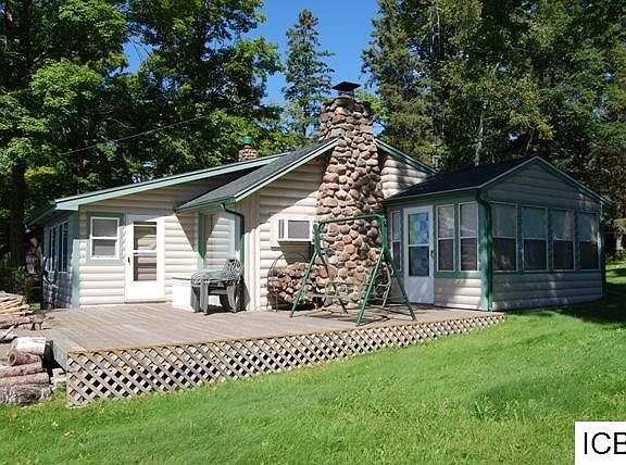 Bowstring Lake! This 2 Bedroom, year round cabin sits just 35 feet off the water, there is a 4 season porch, a 3 season porch, lakeside deck and the T&G, hardwood floors and stone fireplace give it an up north feel. The cabin has had numerous improvements including a recent total bath renovation, new kitchen counters, some new windows and fresh paint & carpet in the bedroom. There is a 2 bedroom/1Bath seasonal guest cabin, a 2 stall garage and storage shed for your toys. This is a great deal on the Bowstring shores!