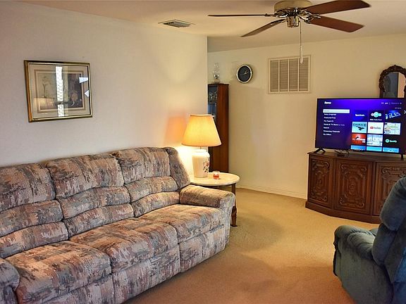 2/1.5/1 home. 864 Ht sq ft, Slider from kitchen to 192 sq ft. bonus area - enclosed Florida room with AC. Washer/Dryer in garage with wet sink and ½ bath. Original Kitchen and bath in pristine condition. Home was only used seasonally. Home comes furnished except for TVs and a few personal items. Two storage sheds in backyard. One against the house has newer electrical box. Looks like there is Terrazzo under the carpeting. Room sizes MOL to be verified by Buyer. Great started home, rental or winter get away.