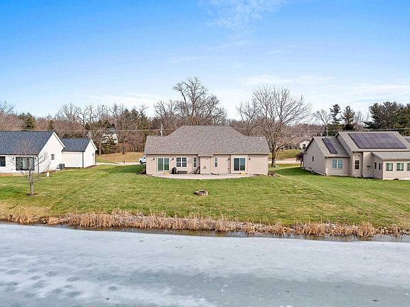 Check out this immaculate, ranch home on beautiful Coyote Creek golf course! This home sits on hole #2 and features great views of the course and pond. Main floor features open concept living with a vaulted ceiling great room. Kitchen features Amish kitchen cabinets, granite tops, stainless steel appliances, walk-in pantry and breakfast bar. Main floor also boast primary suite with tile shower, jetted tub, walk-in closet and sliding door to the patio. Two more bedrooms on the main floor with another full bathroom. Main floor laundry as well. Basement is unfinished will tall ceilings with great possibilities! Don't miss the beautiful professional landscaping around the home. Great location! Come make this your home today!
