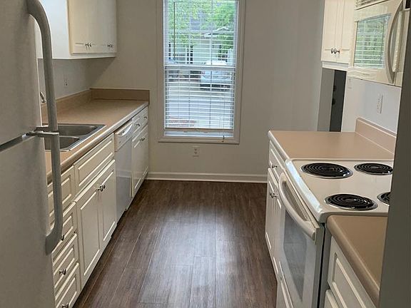 Sought after end unit townhouse with 2 bedrooms and 2 full bathrooms. Brand new LVT floor throughout entire home and all new paint. Galley style kitchen opens to dining room and living room with cathedral ceilings and electric fireplace. Owners bedroom has huge walk-in closet with washer/dryer. Backyard with patio overlooks the LAKE and has a storage room. HOA maintains the front yard. Excellent location, near shopping, dining and Ft. Gordon. Credit score of 600+ and income to be 2.5-3x the rent amount