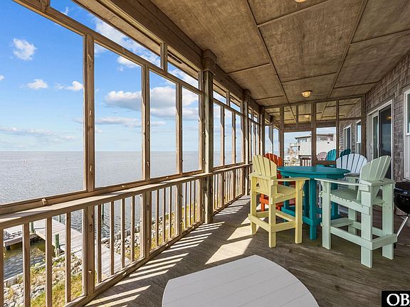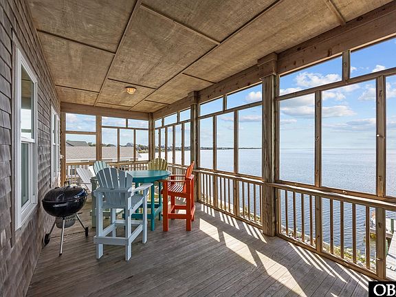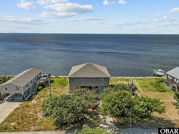 Spectacular, breathtaking sunset water views! Entertaining water activity, including boaters cruising by, kite boarders whipping around, bright colored windsurfers, kayakers, jumping mullet, stingrays patrolling the bulkhead, the many pelicans, ospreys, terns, and cormorants poised to dive from the channel markers for their next meal. Bring your own boat for easy access to the sound / ocean from your back yard dock. Enjoy the fishing and crabbing from your own pier, kayaking, or paddle-boarding to the beach located to the immediate south of the cottage. This beach home has been meticulously maintained. Open layout with numerous windows and large, covered deck spaces featuring a screened porch. Bulkheaded vinyl with heavy rip-rap to minimize erosion. Spacious bedrooms. Very comfy furniture throughout for relaxing and rejuvenating. The bonus room below features a king-sized bed, full bath, sitting area, storage closet for your water toys, fishing and beach gear, and its own private covered deck. There are lots of nearby canals to explore by kayak or paddleboard. Tall attic for additional storage. Frisco bath house beach access is just a short drive with lots of parking and a great boardwalk to transport your beach gear with ease.