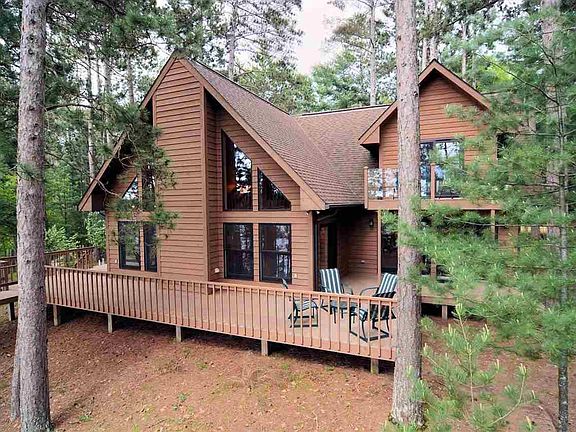 A modified chalet style home on Middle Eau Claire lake brings great cabin appeal and is deceptively large. With six bedrooms and four baths spread across three levels, you can invite the whole gang for more than just the weekend. The home is in impeccable condition, move-in ready and comes furnished. Evening light is spectacular as it sun-splashes the waterfront and filters through the evergreens for a magical end to your day at the lake.