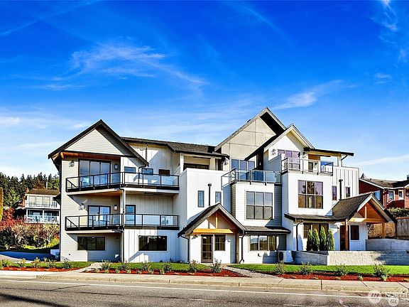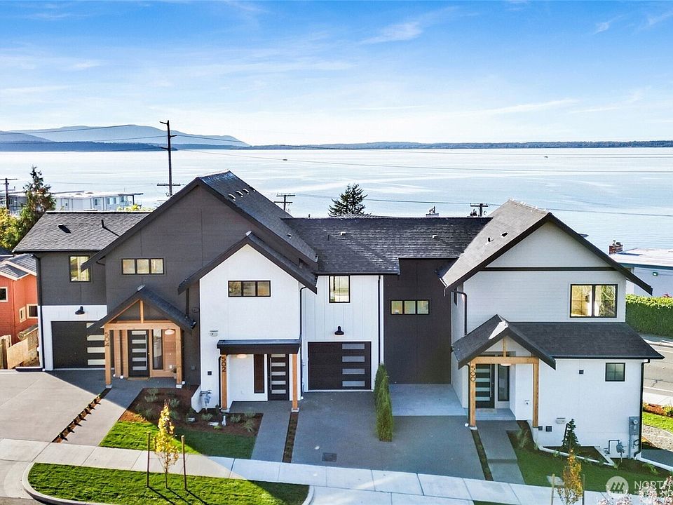 Like-new South Hill townhome offering a rare blend of luxury, design, and views. Inspired by Restoration Hardware, this 3-story residence showcases impeccable craftsmanship, abundant natural light, and sweeping bay views. Every detail speaks to quality—quartz countertops, custom cabinetry, designer tile, RH fixtures and premium appliances. Entertain with ease in the open-concept top-floor living space, complete with a walk-out deck overlooking the water. The main-level primary suite is a private retreat, thoughtfully designed with sophistication in mind. This architectural gem is more than just a home, it’s a lifestyle! Just moments from Boulevard Park, Taylor Dock, Fairhaven and downtown Bellingham.