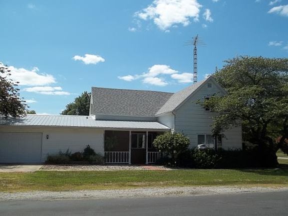 SMALL TOWN LIVING AT A SMALL TOWN PRICE. Spacious home on 3 lots. Nice open front porch and 16x20 patio. Updated and large schrock cabineted kitchen with knotty pine on one wall. Entertain your family in the dining room open into living room. There is a den and nice bedroom on main level with another room that you can make into large walk-in closet or storage room(Seller believes it may have been made for an additional bath room). Upstairs you will find 3 spacious bedrooms. Convenient laundry room with lots of nice cabinets for storage. Call Listing Agent today to make your appointment to see this nice home.