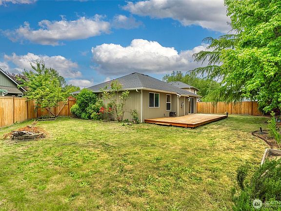 Tucked away in a tranquil cul-de-sac, this charming 3-bedroom, 2-bathroom home with a dedicated den/office combines comfort and function. The open-concept kitchen and living room with vaulted ceilings are perfect for gatherings, while the lush yard and scenic views create your own backyard retreat, with space for gardening and entertaining. This home is complete with new carpet in all bedrooms, and fresh paint in the main living space. This home is in walking distance to schools, shops, and the Orting trail. All this in a quiet, friendly neighborhood—don't miss your chance to call this gem your own!