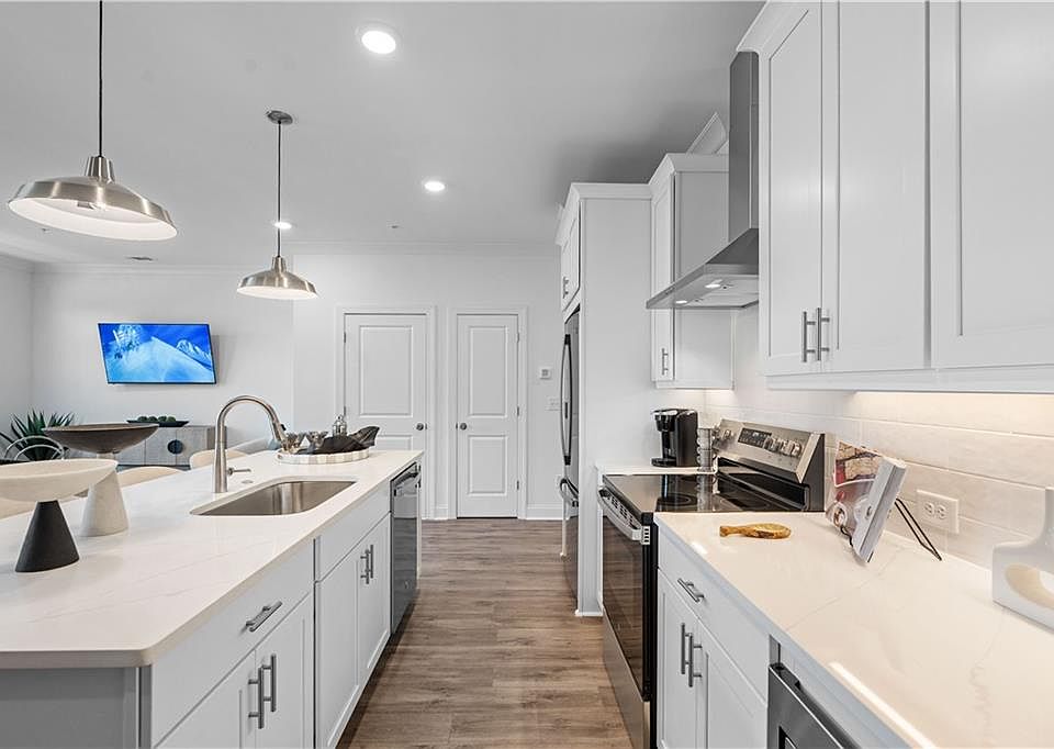 Season of Savings at Market Square! Enjoy an additional $10,000 Towards Closing Costs on the Magnolia Plan by The Providence Group. Estimated Completion: January/February 2026. Experience elevated living in this thoughtfully crafted 3-story stacked townhome with condominium ownership, offering 2 bedrooms, 2.5 bathrooms, and 1,373 sq. ft. of stylish comfort. Designed with the Cool Linen Collection, this home showcases Calacatta Ultra Quartz Countertops and Ambassador Flooring for a clean, contemporary feel. Terrace Level: Step into a welcoming foyer with a conveniently located laundry area and access to a private garage—complete with an Electric Vehicle Charger for modern convenience. Main Level: Enjoy open-concept living with a spacious family room, dining area, and chef-inspired kitchen featuring 42” White Cabinets and Island, quartz countertops, stainless steel GE appliances, a tile backsplash, and an impressive 8-foot island—perfect for entertaining. Natural light pours in, leading to a covered patio ideal for relaxing mornings or cozy evenings. Third Level: Unwind in the serene Primary Suite with a walk-in closet and a spa-like bath featuring dual quartz vanities and a walk-in shower with tile surround. A secondary bedroom with its own private bath offers flexibility for guests, a home office, or personal retreat. Live Where Life Happens. Located in Forsyth County’s top-ranked school district, Market Square offers future shops and restaurants just steps away, plus walkability to the Cumming City Center—bringing dining, entertainment, and community events right to your doorstep. [The Magnolia]