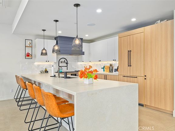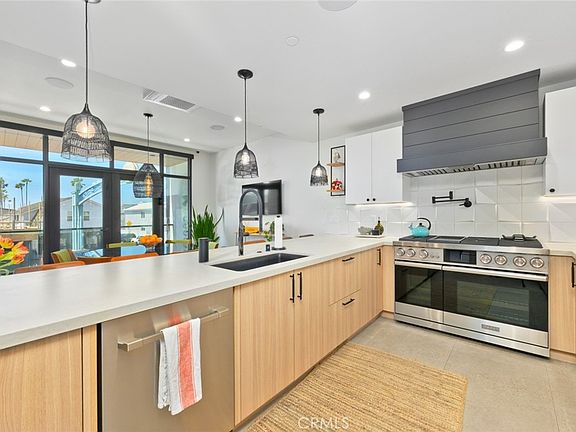 Step inside to find a bright and airy open-concept living space featuring clean lines, sleek finishes, and high ceilings throughout. The gourmet kitchen is outfitted with top-of-the-line Dacor appliances, quartz countertops, and custom cabinetry perfect for culinary enthusiasts and entertaining guests. The adjacent dining and living areas flow seamlessly, creating a warm and inviting environment for both relaxing and socializing.