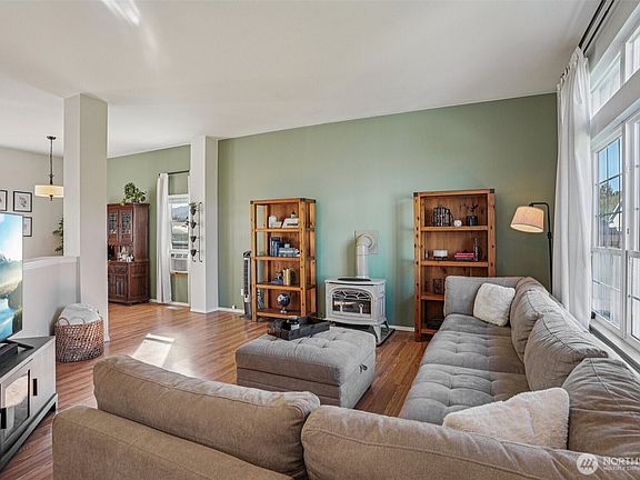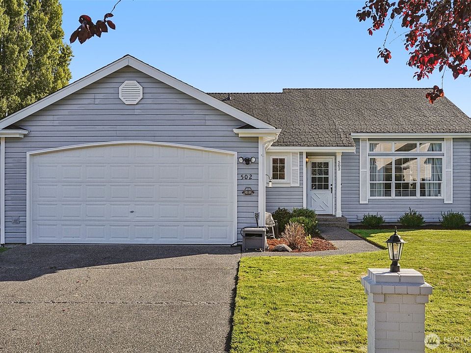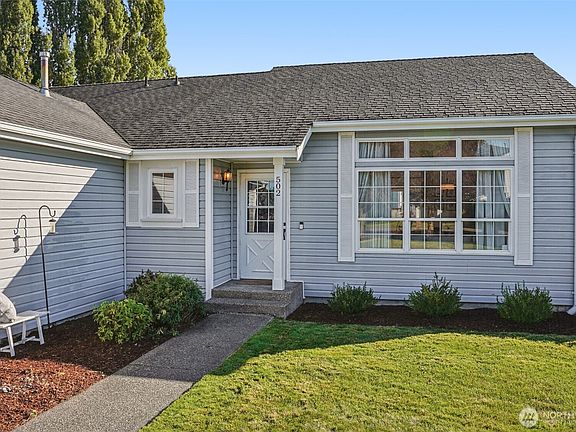 Charming 3-bedroom, 2-bath, 1,404 sq. ft. rambler featuring a partial view of Mt. Rainier. Nestled on a quiet cul-de-sac, this home offers an inviting open floor plan with vaulted ceilings, laminate flooring throughout, and abundant natural light. The fully fenced backyard includes a storage shed, while a stand-alone gas stove and programmable thermostat add comfort and convenience. The spacious primary bedroom features an en-suite bath and a generous walk-in closet. Ideally located near shopping, parks, a dog park, restaurants, and more—this home combines comfort, functionality, and a desirable location.