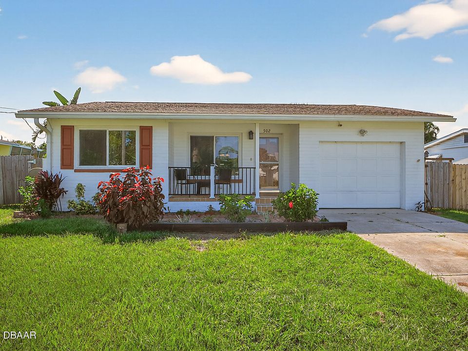 Coastal Comfort Meets Classic Charm! Stroll from the shoreline to this bungalow, with the waves as your soundtrack to find a welcoming living room that flows right into the dining space, perfect for casual meals and gatherings. An added family room provides extra space to relax, or entertain, giving this home both charm and functionality. This 2 bedroom, 1 bath home features original hardwood floors that bring warmth throughout, and a super-cute front porch that's just begging for morning coffee and more. Enjoy a spacious backyard perfect for grilling out, playing with pets, or just soaking up the sunshine. Plus, you'll love the convenience of the 1-car garage for surfboards, bikes, and beach gear. You can set your worries aside this beauty has been fitted with hurricane impact windows throughout. The Seller has also newly updated the carpet in the family room as well as the poured patio outback as of 2024.