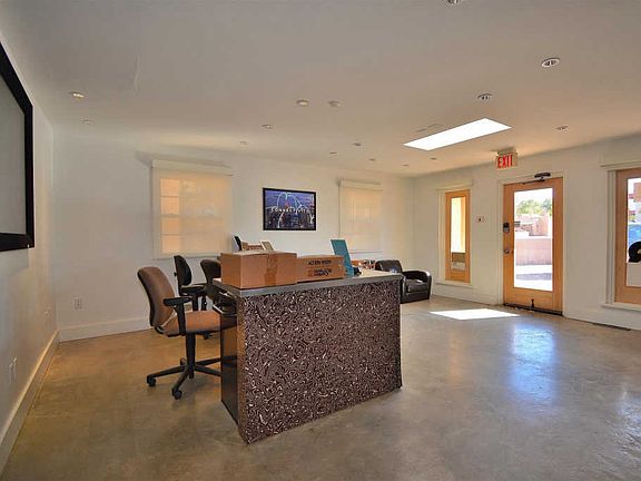 Excellent opportunity for live work situation and owner occupied business located just blocks from the Railyard, Court House and the Plaza in the Business Commercial District of Santa Fe. Onsite parking with 11 spaces. Zoning is BCD. The floor plan has a soft contemporary look with polished concrete floors, inviting reception area, central lounge area, private offices, kitchen and 2 bathrooms, 1 of which is ADA compliant. The building is approximately 3300 square feet and single level. The ceiling height is 9.5 feet, and age of the building is 1960.