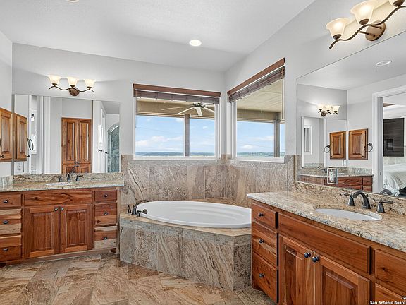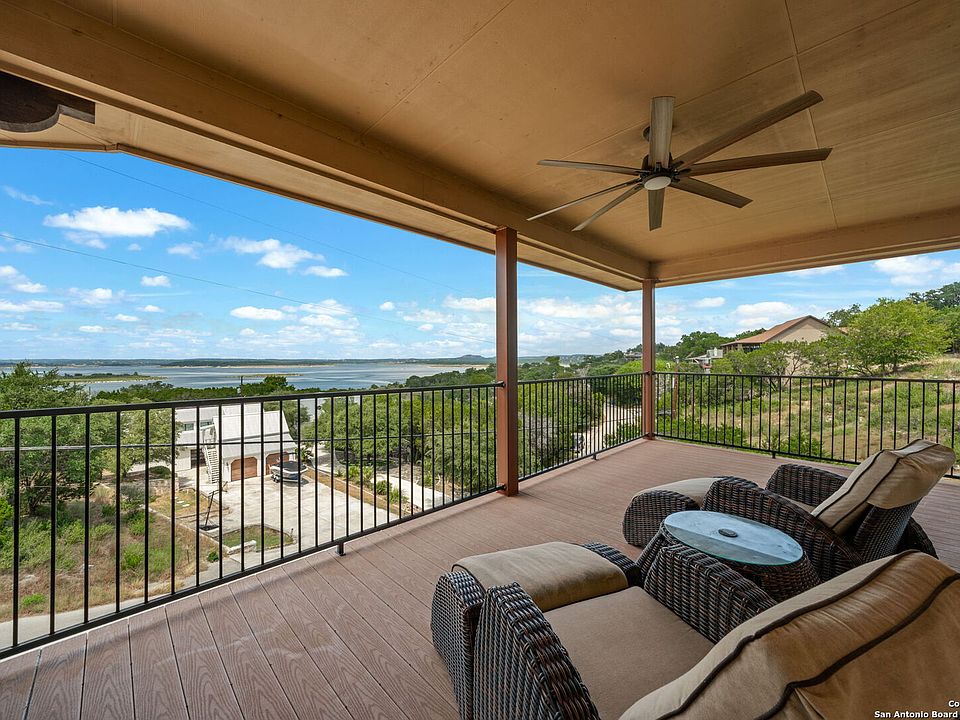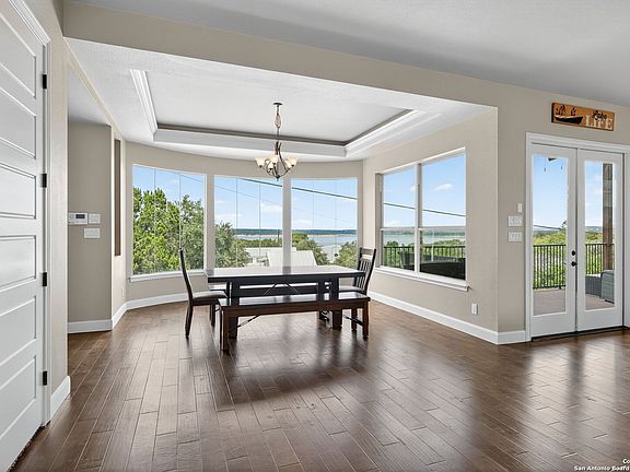 With a million dollar view as its focal point, this .62 acre property delivers the lake lifestyle without compromise. Luxury finishes, a flexible multi level layout and turnkey furnishings create a rare offering on Canyon Lake for you to make this your dream lake house retreat or short term rental money maker! Airbnb short term rental is allowed by the HOA. You wait, you miss out! The fully furnished residence features 4 bedrooms and 3 full baths across 3,170 sqft. Highlighted by an open concept main level with living, dining and kitchen together for easy entertaining. Picturesque bay windows in the dining room give you an amazing view of the lake. Granite countertops and a huge frameless window over looking your backyard full of nature and no neighbors. Gas cooking is provided to the kitchen and outdoor grill by the propane tank located in the backyard. You'll also find a guest bedroom, full bath, office nook and laundry room on the main level. The third floor owner's suite is a private haven with a covered wraparound balcony, a wet bar, a spa bath with an expansive walk in shower with two shower heads, a soaking tub and a huge custom closet. The primary bedroom has the same bay windows as the dining room giving you even more beautiful views of the lake right from your bed. The lower level adds two bedrooms connected by a Jack and Jill bath and a secondary living room / game room. One bedroom opens through glass doors to another covered wraparound balcony. 3 covered wraparound balconies in total. All weather resistant, create multiple outdoor living zones focused on a sweeping Canyon Lake panorama view. A 2 car garage is designed to house a boat and an extra large SUV. Installed in the kitchen sink is an Alkaviva vesta h2 water ionizer that makes alkaline or acidic hydrogen water. Advanced water softener included. The HOA provides a pool, tennis court, clubhouse and a boat ramp 6 minutes away. Boat ramp is located at 2410 Colleen Dr