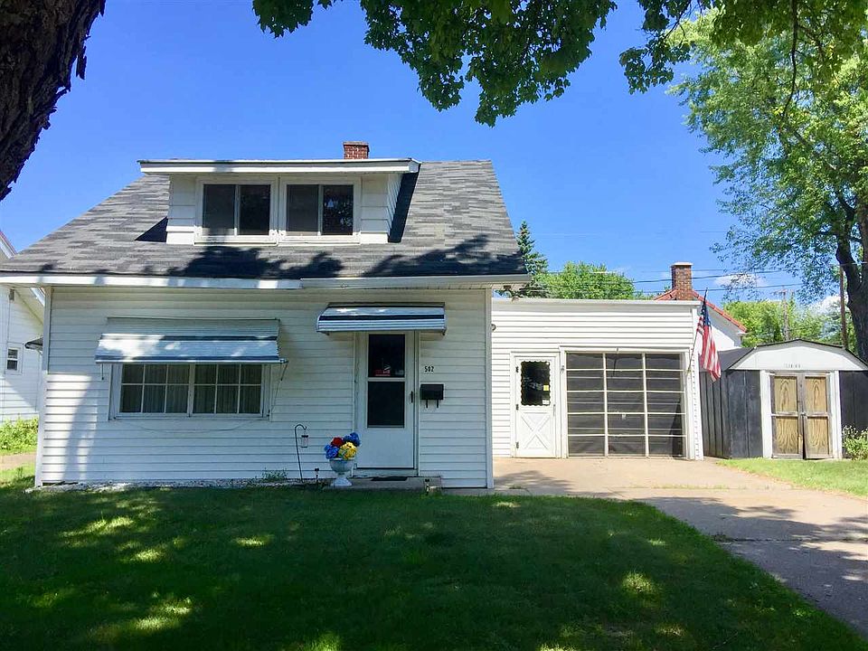 Charming three bedroom, one bath home on corner lot. Features include central air conditioning, one car attached garage, storage shed, dining room, vinyl siding, and all appliances included.