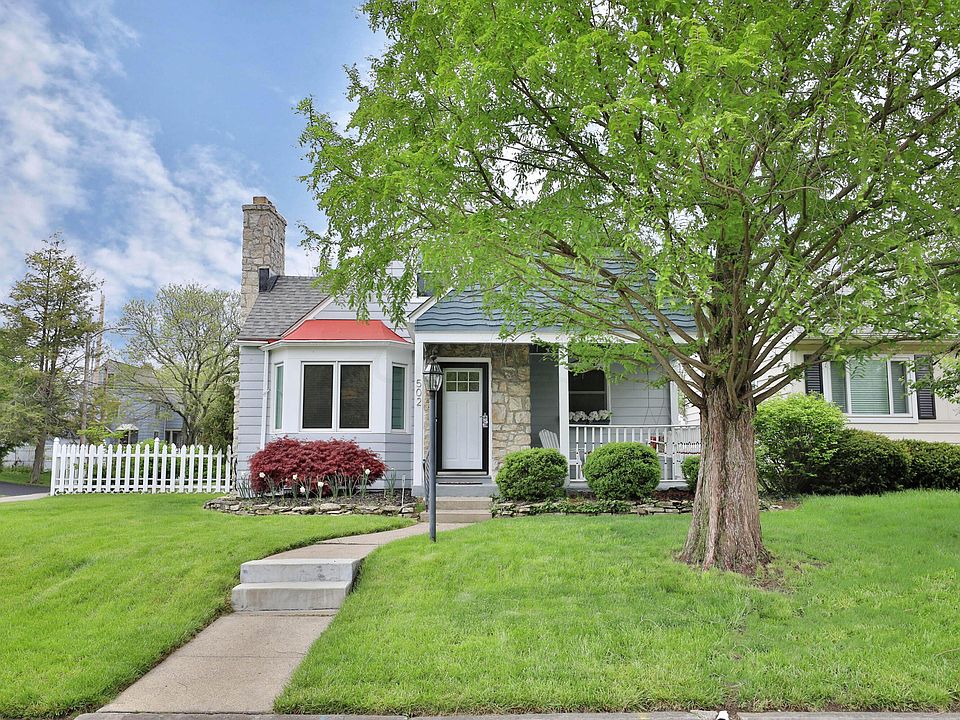 Open 5/15, 3-5pm. This south Clintonville cape cod features a porch w/ swing and lighted ceiling fan; foyer w/ coat closet; an extra-large living room w/ gas log fireplace; eat-in kitchen w/ granite countertop, undermount sink, subway tile backsplash, and stainless steel appliances; full bathroom and third bedroom w/ wainscoting; and the large master bedroom w/ half bath and access to den is upstairs. Fenced-in backyard has a large deck, perfect for outdoor entertaining. One-car garage + one off-street parking. EXCELLENT LOCATION: steps from Glen Echo Park and Ravine, The Crest, Savor Growl, Studio 35 & all the other commerce on Indianola Ave. IMPROVEMENTS: basement waterproofing and sump pump (21), exterior paint (19), HVAC (18), roof (12), Anderson windows (11), and insulation (11).