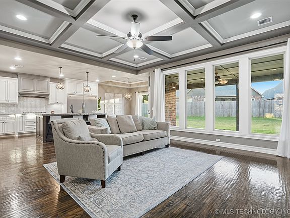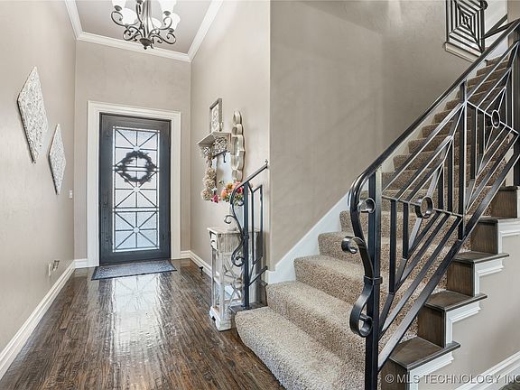 Live in one of Bixby’s most desirable neighborhoods: Birmingham at Yorktown! This 4 bedroom, 3 bath home combines striking design with everyday comfort. The beamed living room features hardwood floors, built-ins, a cozy fireplace, and a light and bright feel with a wall of windows along the back. The chef?s kitchen is a showstopper with a full-size fridge/freezer, oversized 6 cm granite island, modern tile backsplash, and a large picture window in the breakfast nook. Flexible main floor layout includes the spacious primary suite plus an additional bedroom or private study with its own full bath. Upstairs offers two bedrooms and a game room, perfect for extra living space. Enjoy outdoor living beneath the covered patio overlooking a nice-sized backyard. Extra touches include a custom iron front door, epoxy-coated 3 car garage floor. Neighborhood amenities elevate the lifestyle with community pool, park, and miles of walking trails.