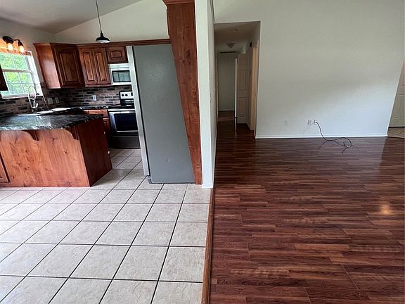 A gem! 3 beds, 2 bath featuring vaulted ceilings, open-concept living, and a mix of tile, wood, and carpet flooring. The stylish kitchen offers granite countertops and ample storage. Enjoy the spacious master bedroom with en-suite, two additional bedrooms, and a fenced-in backyard. Complete with a covered carport, this inviting home is a must-see. Schedule your showing today!