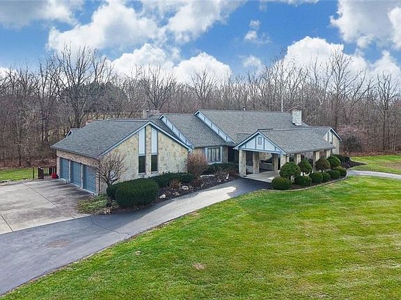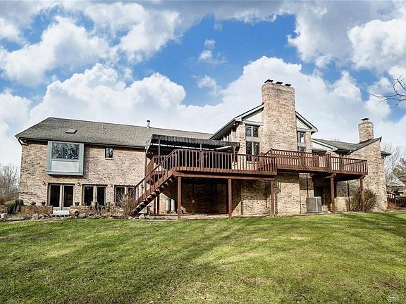 Sophisticated country living at it's best! Absolutely stunning custom ranch on approximately 3.7 acres (w/woods & creek) in Clearcreek Twp. (Springboro Schools!) Over 6000 sq.ft. of finished living space with approx. 1500+sq.ft. unfinished!! Enter through the gates to your striking circular drive w/"porte-cochere" entry to the front door. Custom quality throughout! Impressive great room with coffered ceiling, walls of windows, fireplace, and wet bar. Five oversized bedrooms, each with a full bath attached. Two additional half baths. Colossal dining room with multiple built ins. Office/den with beamed ceiling is adjacent to wet bar/butler's pantry. Master suite offers tremendous amount of closet/storage, fireplace, and extensive attached bath. Exquisite curved staircase to lower level. Walkout lower level offers additional family room w/fireplace, rec room, kitchen, bedroom with bath. 48x48 barn. Picnic gazebo. New roof 2018. 2 HVAC systems, one replaced 11/2019. No HOA. MUST SEE!