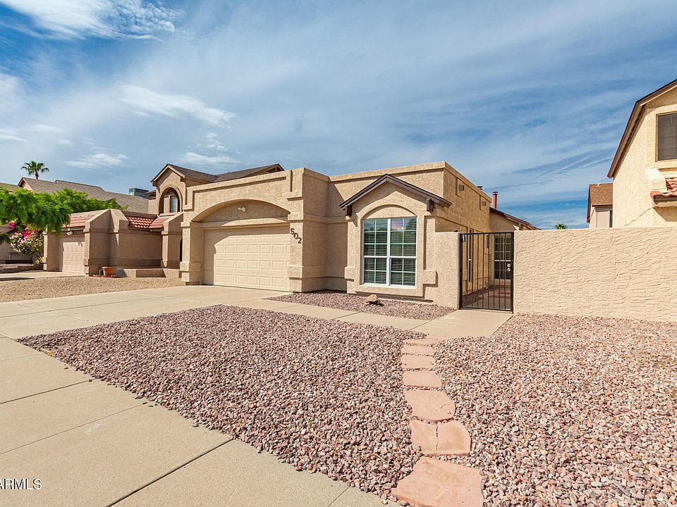 Single-level home was reconstructed from the ground up in 2009 and sits in a prime North Phoenix location near I-17, 101 & 51. 2024 HVAC. The inviting great room floor plan showcases soaring vaulted ceilings, upgraded ceiling fans, and a cozy corner wood fireplace. A new sliding door opens to redwood deck & pergola. The bright kitchen features cherry-stained cabinets, brand new Frigidaire & GE stainless appliances, and pantry, along with a separate breakfast/dining room. New tile flooring 2021. Spacious primary suite includes a large walk-in closet plus large bathroom. 2 car garage offers storage cabinets, epoxy floor & new LiftMaster garage door, new garage lights. Low HOA fees. Low maintenance front & backyard. The owner has made this home truly move-in ready.