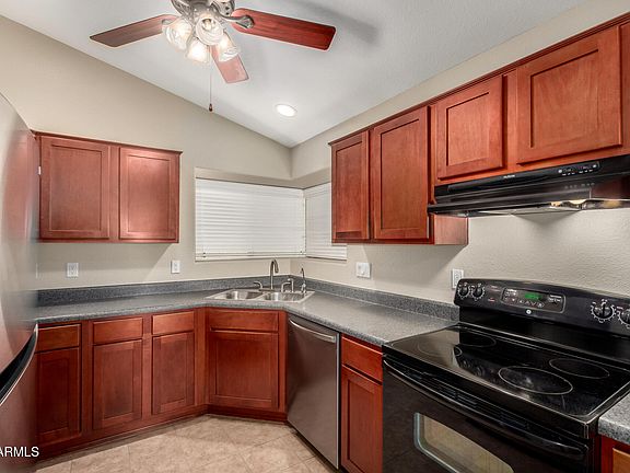 This single-level home was reconstructed from the ground up in 2009 and sits in a prime North Phoenix location near I-17, 101 & 51. 2024 HVAC. The inviting great room floor plan showcases soaring vaulted ceilings, upgraded ceiling fans, and a cozy corner wood fireplace. A new sliding door opens to redwood deck & pergola. The bright kitchen features cherry-stained cabinets, brand new Frigidaire & GE stainless appliances, and pantry, along with a separate breakfast/dining room. Spacious primary suite includes a large walk-in closet plus large bathroom. 2 car garage offers storage cabinets, epoxy floor & LiftMaster door. Low HOA fees. Low maintenance front & backyard. The owner has made this home truly move-in ready. Close to shopping, dining, & everyday conveniences