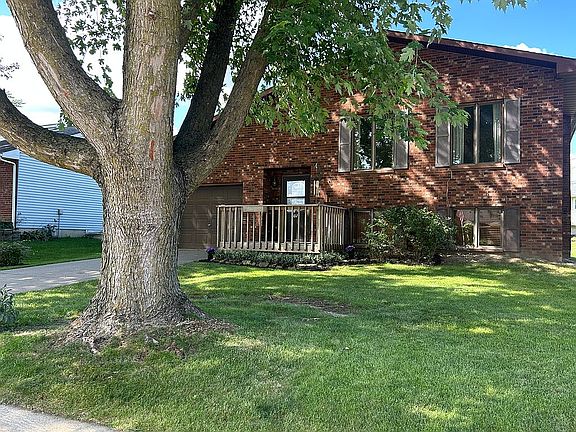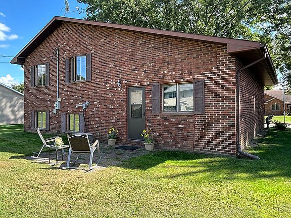 The brick exterior is low-maintenance, complemented by mature trees, creating a home with timeless appeal.