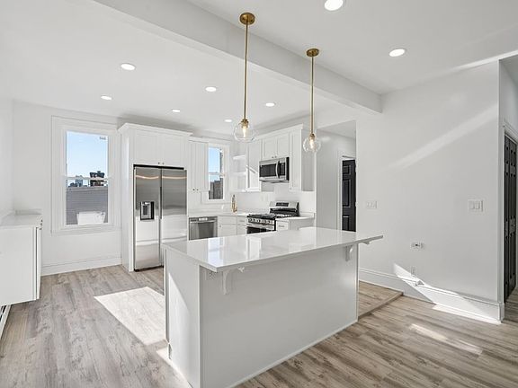 Experience elevated living in this stunning, gut-renovated 1-bedroom, 1-bath residence perched on the top floor with sweeping views of the Manhattan skyline. A dramatic skylight floods the home with natural light, while the open-concept layout and designer kitchen with premium stainless steel appliances create a sophisticated space for both relaxation and entertaining.