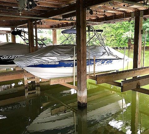 Two boat docks are included (one covered, one open) with this beautifully updated lakefront town home. Updated kitchen with granite counters, tile floors in kitchen and baths. Entry level boasts open kitchen to dining & great rooms that look over the lake, as well as a convenient 1/2 bath and cozy wood burning fireplace. Upper level boasts 2 bedrooms, full bath and second deck to enjoy the quiet and beautiful lake setting. Lower level boasts Master Suite or could be used as Family room or both, full bath, laundry & storage and walk out to patio overlooking the lake. ). Ceiling fans throughout. New HVAC in 2014 and new Fridge 2015. In-ground swimming pool, 10 minutes to grocery shopping,30 minutes to Roanoke, 45 minutes to Lynchburg. Great community on the lake too! Desirable commun.