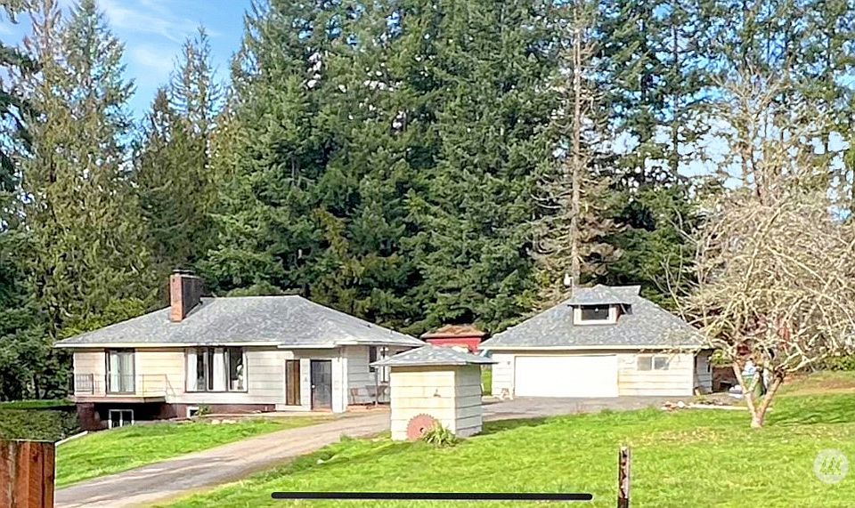Open-concept country home with 3 beds, 1.5 baths, bonus rooms, and a mostly finished walkout basement. Cosmetic work is needed to make it shine. Features include new roof, paved driveway, heat pump, fully fenced inground pool with slide and new cover, detached 2-car garage with workshop & loft, tons of storage, RV parking with electrical hookups, apple/plum trees, raised garden, small partially fenced pasture, covered patio, deck off the primary bedroom and second bedroom both on main floor. All of the appliances are included. Seasonal creek at back of the property. No restrictions! Shared well with an abundance of great water! Located on a serene dead-end road with easy access to I-5. Deer frequent the property. This is a must-see!