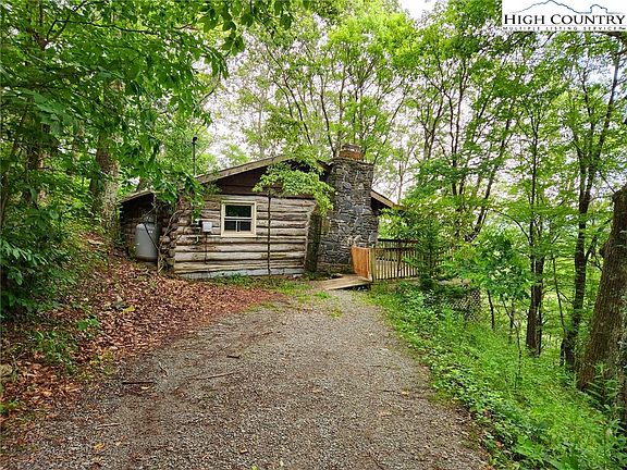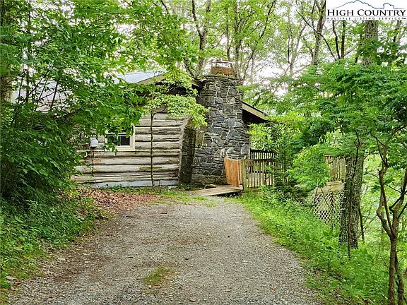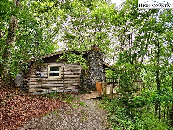 Secluded fixer-upper log cabin conveniently located minutes to downtown Boone & ASU. Winter views, wrap-around covered deck, wood floors, large picture windows. Stone fireplace is leaning and floors are sloping, a structural engineer report is recommended.