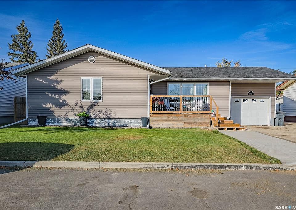 Your next home awaits! This large family home located in Delisle is less than 25 minutes to Saskatoon and is ready to call your own. With lots of key updates over the years and a functional layout - this property is worth taking a look. Featuring eye capturing street appeal with updated vinyl siding, a large front deck and updated pvc windows throughout the main floor. The kitchen boasts tons of counter top space with an eating bar peninsula, stainless steel appliances and a good sized adjoining dining area. A living room for the whole family to enjoy with new laminate flooring, large picture windows bathing the space in natural light and is more than spacious enough to host the holiday events. There are 3 bedrooms on the main floor, a 4 piece bathroom, and a generous sized laundry room with access to your back yard. The finished basement has a recreation room with wet bar, 4th bedroom with large walk in closet, 3 piece bathroom, large den/bonus room and a huge storage room. The fully fenced back yard has a deck, large shed, gazebo, parking pad and tons of space to create your own back yard oasis. The attached garage has an electric door, will keep the elements off your vehicle and provide some extra storage. Key updates for the property are: furnace 2024, stove 2023, living room pot lights, newer central air, siding and main floor windows, living room flooring 2024, and an updated front deck. If you are looking for a home that gives you enough space to grow then this could be the one for your family. Delisle boasts double lane highways to Saskatoon, affordable property taxes, k-12 school, arena, golf course, and so much more! Call your favourite realtor and book your private tour!