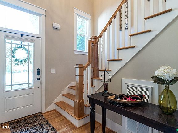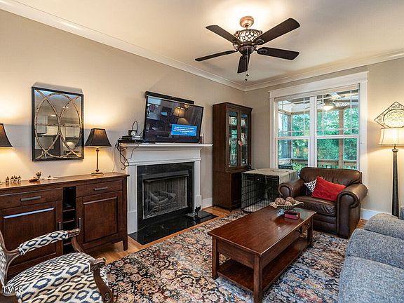 Welcome home! Lovely home in a great location with no thru traffic. Old Mill Village is a Neighborhood within the 'Villages of Apex'. The amenities at Villages of Apex are included in the HOA dues, including 2 pools, clubhouse w/ fitness center, and walking trails. Relax/entertain in this open floor plan, including the screened porch and separate deck. The woods in the rear are Common Area which cannot be built on. Site-finished hardwood floors give character and quality throughout. Large laundry room with deep sink and closet. Two-car garage. Close to the charming shops and restaurants in historic downtown Apex! Put this one on your list!