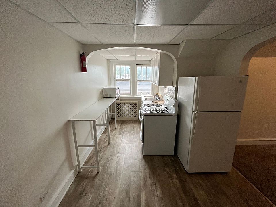 Owner is responsible for water, sewer, trash, heat and hot water Tenant is responsible for electric, gas range. Small pets allowed with addition $500 deposit and $50 monthly fee per pet. Applicants must have verifiable income of at least 3 time the rent amount. Our tenant screening process includes credit score, eviction history, criminal background. Those with credit scores under 650 will require a second deposit held for one year. *Tenant liability insurance and administration fees $23.50 per month