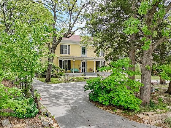 Come home to this amazing historic BRICK 1845 home on 3 acres in Pleasant Hill! This one of a kind home doesn't pop-up often, you will be wowed with the home and the property! So much to offer including a 200 year old Liberty Tree (complete with plaque from the Mo Dept of Conservation) historic large two story barn (40x30)- the perfect wedding venue!!! (The large barn was stabilized and a new floor upstairs was added in 2018), several outbuildings, garden space, circle drive and plenty of green space combined with mature trees. Inside you'll find even more gorgeous details including hardwood floors, curved staircase, original wood trim, fireplaces, the owners also added historic tile in the dining room, tin ceilings and newer wallpaper (the old was removed and walls were repaired. Updated electrical panel, new concrete floor was poured in the basement and a sump pump was added, all new plumbing, some newer windows were also put in. Think of the possibilities here on your own acreage, who wouldn't love their own event space?!