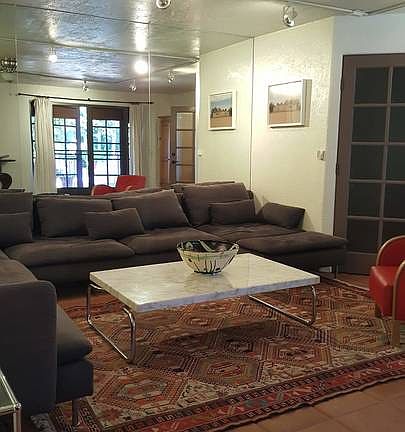 This Gorgeous 2 story Spanish-style guesthouse is in the flats of Beverly Hills and just 2 blocks from Rodeo Dr. Can be rented either nicely furnished with the pictured furnishings, or can also be leased unfurnished. First floor is spacious living room , kitchen and bathroom, and upstairs is all Master suite and bathroom with plenty of closet space. French doors and windows throughout. All utilities included. Perfect rental for busy individuals looking for easy move-in, in an amazing world-class location. The G/H parking space has it's own private gated property entrance off the pool/garden area.