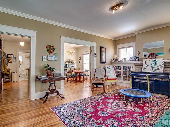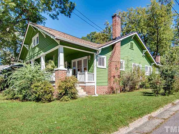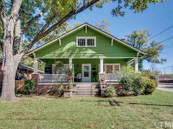 THE Craftsman Bungalow you have been waiting for. Classic 4-gabled covered porch w/ front & side entry stairs. Original: german board siding, corbels, 4/1 wavy glass windows, pine floors & walls. 3 decorative coal burning hearths w/ vintage covers. New roof. Tankless hot water. Flat, fenced backyard. Need more space to play? Sits aside a +/- 2 acre publicly maintained field. Small scale homes line this lovely block of Old East Durham. Walk to Angier/Driver business district. 5 minute drive to Downtown.