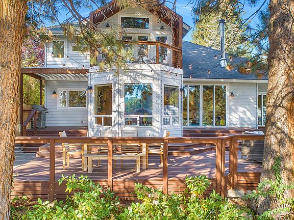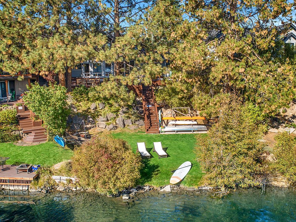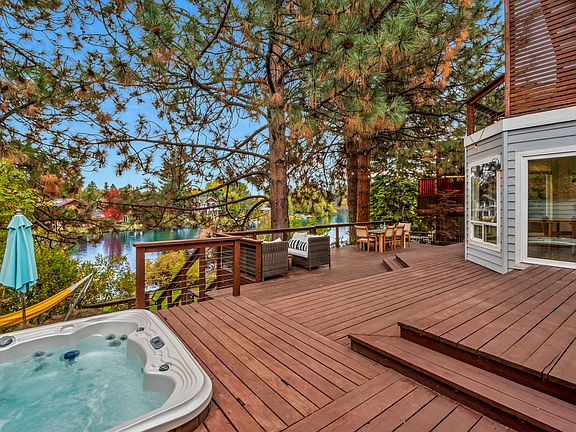 This stunning Deschutes riverfront home with easy river access is only a few blocks from the Galveston corridor and less than a mile to Old Mill or downtown Bend. Newly remodeled and expanded in 2014, the homeowners designed the home for beauty and function with interesting vaults, timeless finishes, & abundant windows for light and views. Wake up every morning feeling like you are on vacation watching the light bounce across the water through the trees. The thoughtful floor plan creates many options with 3 bedrooms & 3 bathrooms on the main level in addition to the luxurious master suite and library/office upstairs. Above the garage you will find guest quarters with a private deck, small kitchen, & full bathroom which has potential to be locked off from the rest of the home with minor modifications.