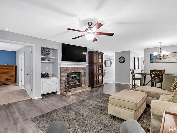 Very spacious Ballwin ranch condo in sought after Woodside Trails Subdivision with many upgrades, finished lower level & attached over sized 2 car garage! Main level offers a large eat-in kitchen with stainless steel appliances, granite counter tops & pantry. Split floor plan has the guest bedroom, bathroom and laundry room on one side. Master bedroom has a custom walk-in closet, plantation shutters and french doors, leading to a beautifully updated bathroom with walk-in shower, quartz double vanity sink, and separate water closet with bonus linen closet. The super-sized living room/dining room has a wood fireplace and sliding doors to the deck overlooking the woods. Downstairs offers a 3rd full bath with updated vanity, 3rd bedroom, office/workout room, family room, ample storage and a second patio to enjoy the quiet, peaceful view of nature in the backyard. New roof 2024, furnace 2023, upstairs carpet 2025, and fresh paint. Enjoy easy living with the HOA covering water, sewer, trash, grounds maintenance, snow removal, some insurance, pool, clubhouse, and tennis/pickle/basketball court. Excellent location and meticulously maintained!