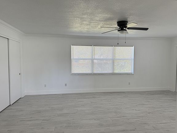 Discover tranquility and modern living in this beautifully remodeled 2-bedroom, 2-bath home, perfectly positioned on a large corner lot with breathtaking lake views. This light-filled sanctuary features a modern, open kitchen with elegant quartz countertops, perfect for both everyday meals and entertaining. Porcelain tile floors flow throughout, creating a bright and seamless living space. Peace of mind comes standard, with a new metal roof and AC installed in 2023. Located on a quiet street with a convenient circular driveway, the home is situated directly across from Easy Street Park and is just a mile from the stunning Indian River.