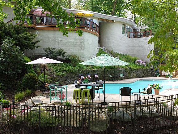 Welcome to Sandcastle; a mid-century contemporary home inspired by Frank Lloyd Wright designs. This mountain-top home sits on a generous 2-acre wooded site. Upon entry, you're immediately met by redwood and cedar-planked dome-vaulted ceilings, and an expansive great room featuring a wall of windows with breathtaking views of the Blue Mountains and a large balcony, pool & spa below. Suffused with light, every room offers glassed wall windows. Zoned radiant heat on the upper and lower floors. The kitchen features all stainless steel appliances, ample storage, and plenty of counter space. You'll find the master suite to be incredibly inviting. The bath offers a double shower, and a tub with a whirlpool. The adjoining balcony looks out over the pool and mountains fostering such peace and relaxation just steps outside of your bedroom. Below, in the lower level, find two more bedrooms, and a full bath. Steps lead out to the pool and oasis below. Plenty of basement storage. 2-car carport.