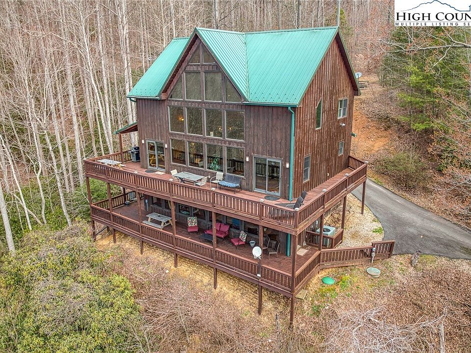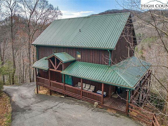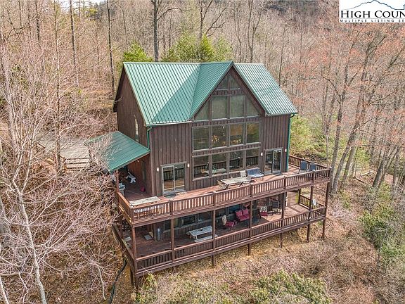 Gorgeous cabin with over 38 acres and 1,168 feet of frontage on the bold Elk River is being offered turn key and ready to enjoy all of your mountain dreams or continue as a powerhouse rental! Property extends from the gorgeous water all the way to the top of the ridge for total privacy and the potential for additional homesites with some driveway and grading already done. Home has averaged roughly $75K per year as a STR or would be the perfect family retreat! Located exactly 30 minutes from area ski resorts and 12 minutes from Watauga Lake, nearby outdoor adventures await all year round! Easy paved access all the way to the home with wrap around decks on each level to enjoy the cool summer breezes and sounds of the river below. Inside you will be awestruck by the soaring ceilings on the main level and the wall of windows inviting in the breathtaking mountain views. Totally open floorplan with the kitchen, dining, and living area accentuated by a stone fireplace on the main. Two beds and full bath upstairs with game room, additional living area, steam room, and master suite downstairs with tile shower and jetted tub. Take time to explore the virtual tour and come see!