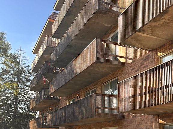 THE best condo in the complex is now for sale, not to be missed! Top floor, no neighbors above, a true gem with access to its 30 ft long balcony from each room, the easier to enjoy sunny days outside year-round due to its perfect southern exposure. This immaculate condo features in-unit washer and dryer, updated bathrooms, fresh paint and newer SS appliances. The kitchen has a built-in panelled dishwasher, oversized farmhouse sink, butcher block countertops and leads to a generous-sized dining area with built-in wine rack. HOA monthly assessment includes everything, the owner pays only for electricity! This building does NOT have the master HOA additional assessment, hence the lower monthly. Included are a heated 1 car parking in garage, with storage cabinets on the wall PLUS a separate storage locker. A very well-maintained, secure building backing out to a gorgeous nature and lake area with tons of greenspace. Nothing to do-just to move in! Welcome home.
