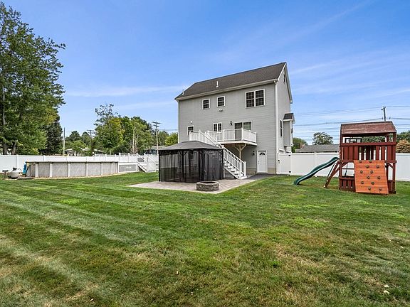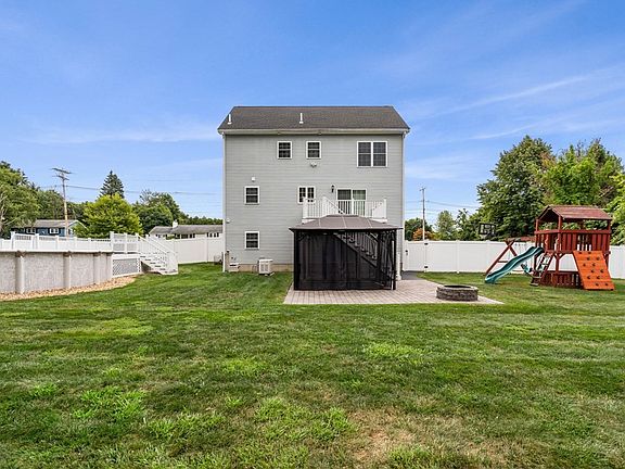 Stunning 3 bedroom, 2.5 bath, 2 car garage colonial situated on a manicured, fenced, acre lot. The kitchen features granite countertops, stainless steel appliance, an island that seats two, tile backsplash, a dining area, and a slider that leads to a maintenance free deck. Off the kitchen you will find a gas fireplace family room and a formal dining room which could also be used as formal living room. The powder room with laundry completes the first floor. Upstairs you will find a beautiful primary suite with a large walk-in closet. The ensuite comes equipped with tiled walls + flooring, bench seating, a niche, and a rain shower head. You will also find a double bowl vanity with plenty of storage and a linen closet. On the second floor you will also find two sizable bedrooms and a guest bath. The third floor is finished and just needs a heat source added to it. Above ground pool with maintenance free deck. Large patio w/ built-in fire-pit. Gas Generac generator. Irrigation system.