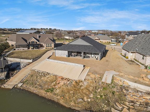 Stunning Custom Waterfront Home in Runaway Bay – Perfect for Personal Retreat or Airbnb Investment! This sprawling, open-concept waterfront home is designed for comfort, functionality, and breathtaking water views. With a split-bedroom layout, the expansive living and kitchen area is light and bright, seamlessly blending indoor and outdoor living. The gourmet kitchen features quartz countertops, an oversized breakfast bar, and abundant cabinetry — ideal for entertaining guests or hosting short-term rentals. A massive utility and mudroom includes a butler’s pantry and extensive storage. The private primary suite offers a spa-like ensuite with a luxurious soaking tub, separate shower, and a dedicated dressing area just outside the oversized master closet. Step out onto your secluded patio escape or enjoy the spacious back outdoor living area. Guest bedrooms are tucked on the opposite side of the home with a Jack-and-Jill bath, plus an additional powder room for visitors. The oversized two-car garage provides plenty of room for lake toys. Situated on a large lot with a concrete retaining wall and shared private boat ramp, this property is fully equipped for lake life.