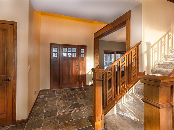 A custom craftsman home located in one of Post Falls' nicest cul de sacs. Over 4500 sq ft. 6 bedrooms, 3.5 baths, great room, living room/den and rec room. Extensive use of slate tile, wood trim, and granite double sided fireplace in the great room to the dining room. Features main floor master suite, double gates for boat or RV storage. Walkable to schools and parks.
