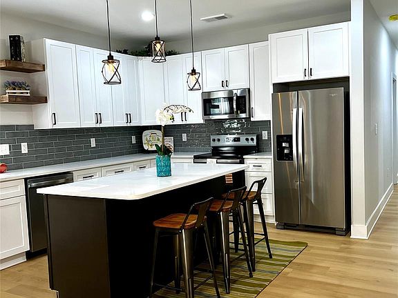 Come see this beautiful custom, new construction home in Bessemer City close to highways shopping and Charlotte! This ranch home on an almost quarter acre corner lot with a fenced yard includes a hard to find attached two car garage. Inside you find an open floor plan with premium LVP flooring throughout. The stunning upgraded kitchen is the heart of the home and features quartz countertops, stainless steel appliances, an eat-in large center island, custom backsplash, recessed lighting and white Shaker cabinets. The primary suite features a relaxing bath that has a tiled shower, double vanities and a walk in closet with custom built in shelving. Two additional bedrooms provide room for family, guests or an office and include custom closet built ins also. The convenience and luxury of the large attached two car garage is great on rainy days and/or cold mornings. The garage includes space for storage and has a professionally applied epoxy floor covering. The large backyard is fenced with a privacy fence and the back porch is perfect for grilling and entertaining with friends and family. Washer/Dryer included. This house is ready to move in and make it your home.