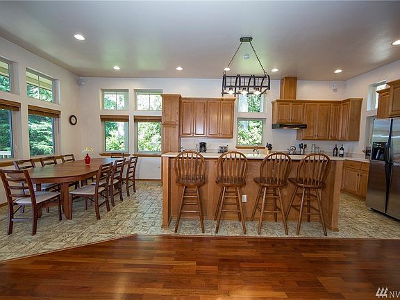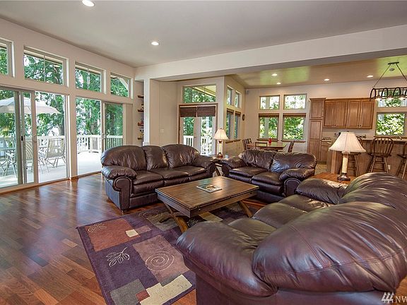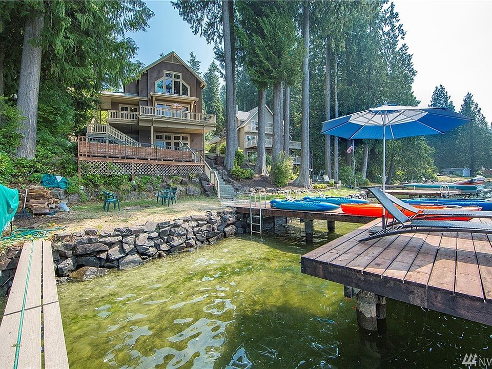 Custom built ski oasis on Lake Roesiger. Awesome dock with covered boat lift located on the deep end of the lake. Expansive kitchen with solid surface counters & beautiful cabinetry opens to great room w/super high ceilings. No expense spared w/central air, fireplace on every level & 15 KW generator plumbed for propane so you will never be without power. High speed cable throughout. Home built w/entertaining large groups in mind. Perfect VRBO opportunity as this home sleeps over 20 comfortably!