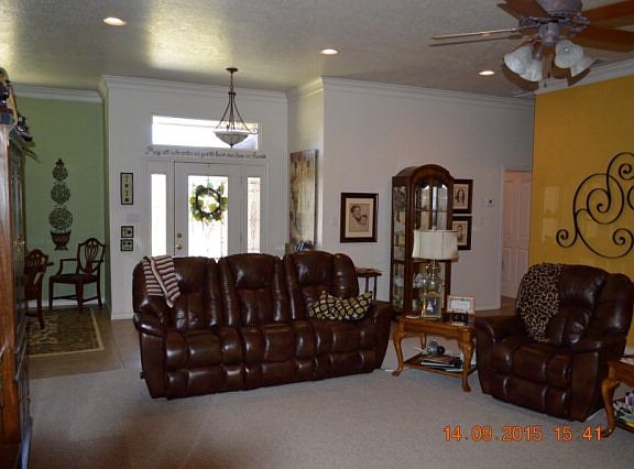 Super high quality with an extreme price reduction! High ceilings, crown molding, vast kitchen, beautiful stained cabinets. Corner sink w/ window, large island, breakfast area.2 large rooms with jack & jill bath. Master Suite is gigantic w/ huge walk through closet. 4th bedroom or office. Separate utility & 1/2 bath.Plantation shutters, lots of ceramic tile and 2 ac units.